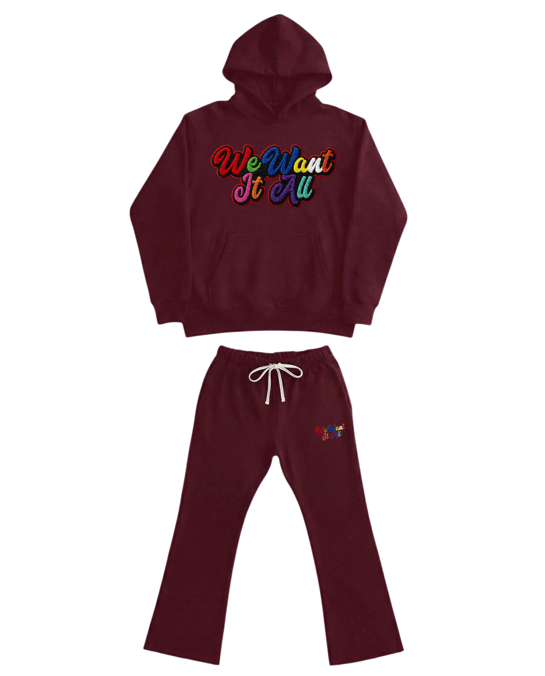 This premium sweatsuit features a bold chenille embroidery patch across the chest, delivering that textured, high-end feel that stands out instantly. The matching sweatpants are finished with a crispy 2D embroidered logo down the leg for a clean, elevated look.